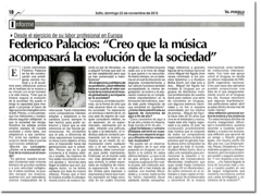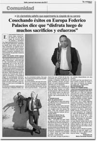 I have known Federico Palacios for ten years and I followed his professional career achievements very closely. Federico Palacios is a highly talented clarinetist, researcher and organizer. His last recording is a clear example of his abilities, a CD of great power and acclaimed by critics.