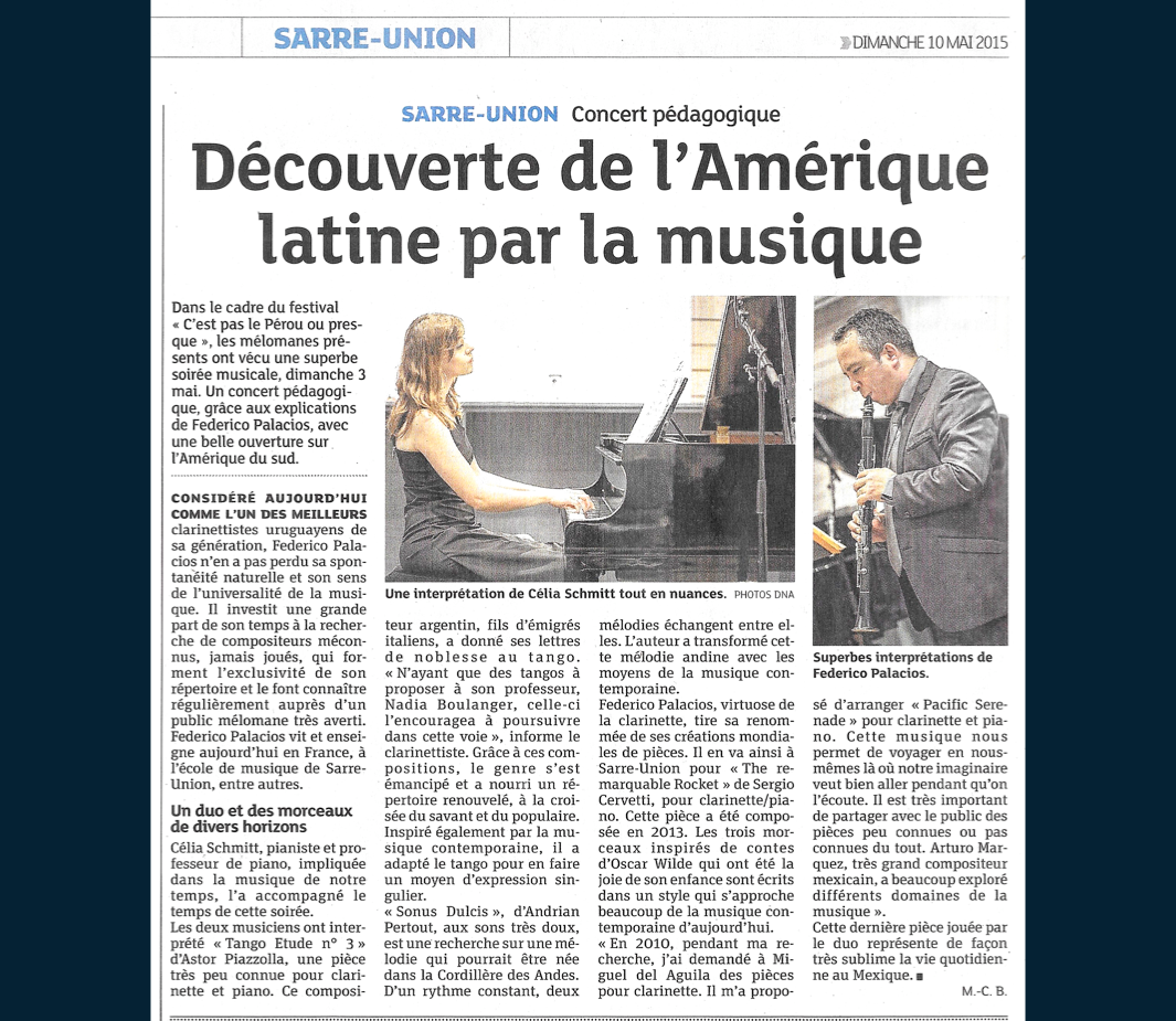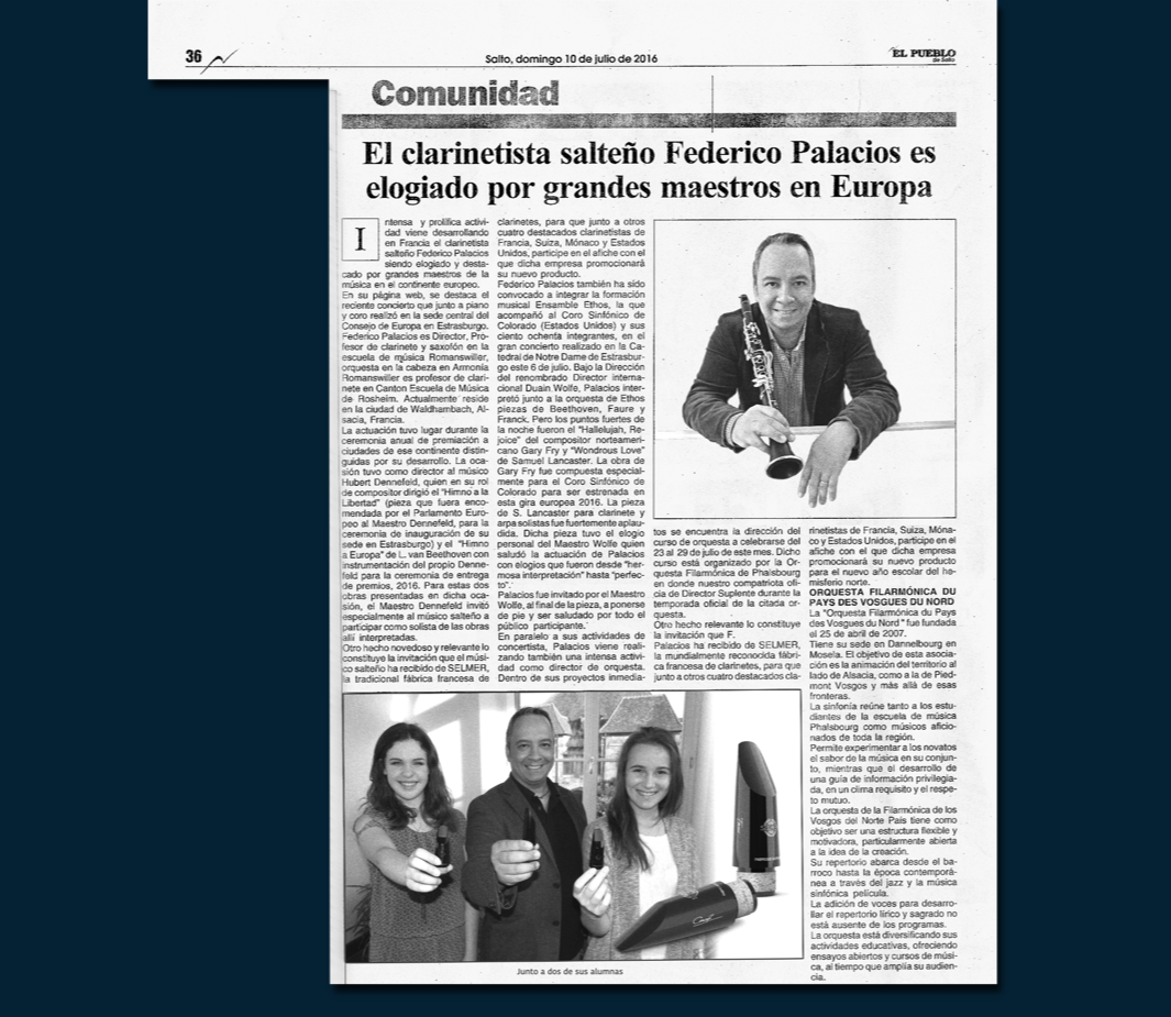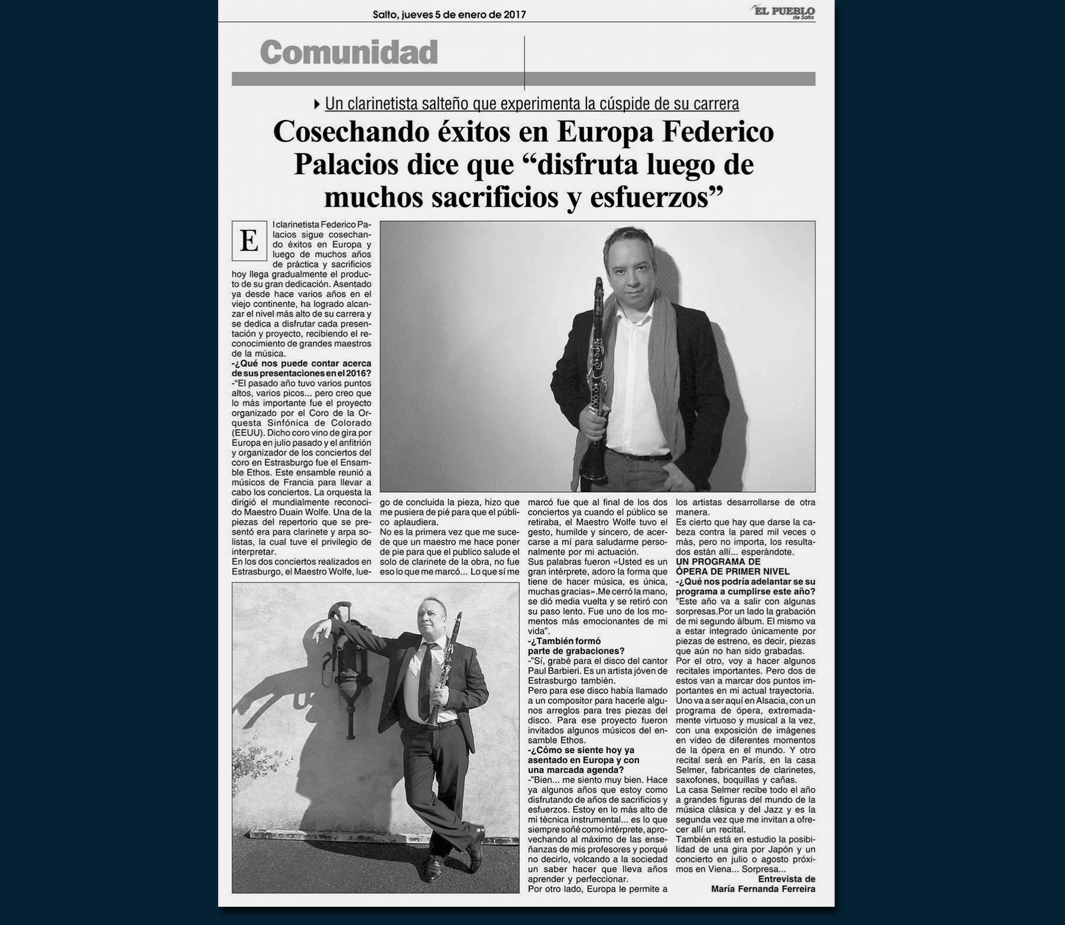« Federico Palacios stands today as one of the best Uruguayan clarinetists of his generation. »