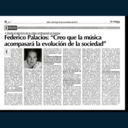 “ I have known Federico Palacios for 10 years and I followed his professional career achievements very closely. Federico Palacios is a highly talented clarinetist, researcher and organizer. His last recording is a clear example of his abilities, a CD of great power and acclaimed by critics.”